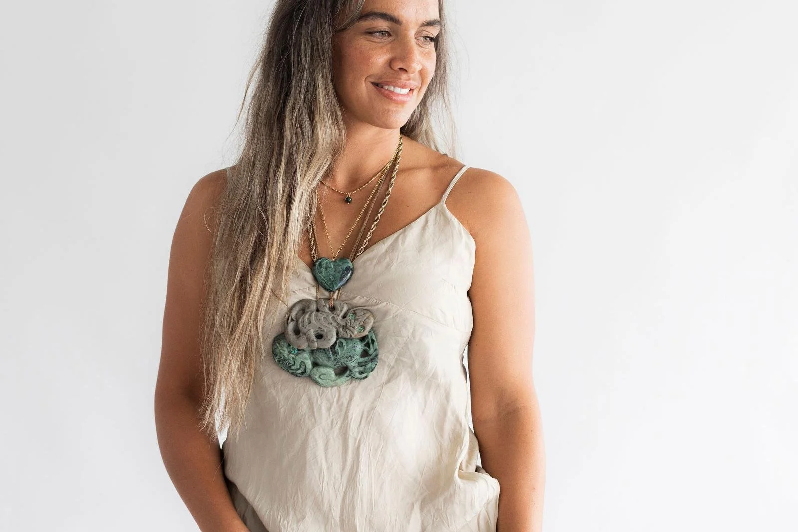 For this collection, we wanted something that suited everyone and decided to work with two kohatu, kokopu which is light green with flecks of brown, and tangiwai, which is greeny blueish in colour.